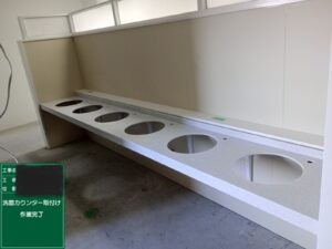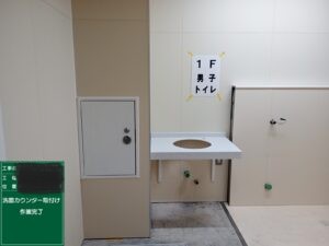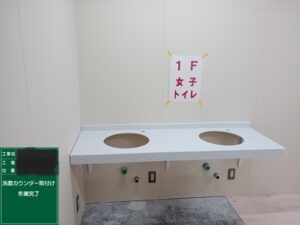 トイレブース取付け後は機械設備工事業者、電気設備工事業者に引き渡して器具付けを